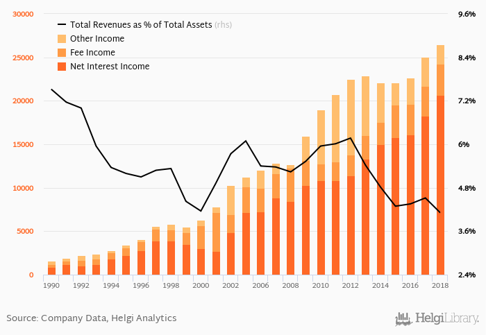 Bank's total revenues accounted for 4.11% total assets in 2018, down from 4.52% a year earlier.