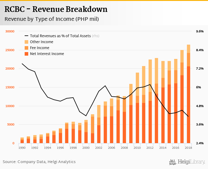 RCBC generated total banking revenues of PHP 26,481 mil in 2018, up 5.8% compared to the previous year.
