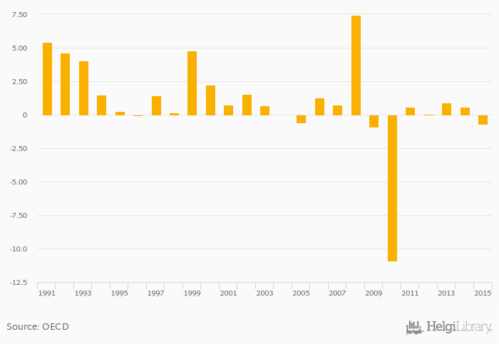 Real Gross Wage Growth fell 227% to -0.713% in Belgium in 2015, according to OECD.