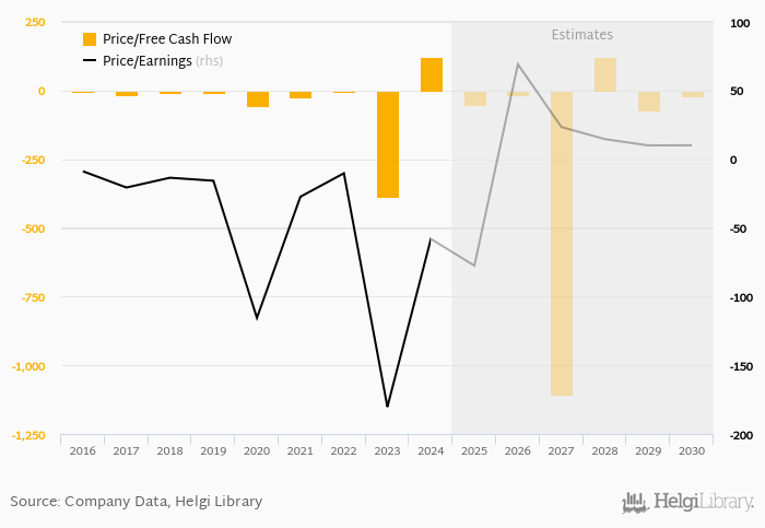 At the end of 2024, the firm traded at price to earnings of -58.0x. Over the last five years, this multiple achieved a high of -10.2x in 2022 and a low of -180x in 2023 with an average of -78.2x.