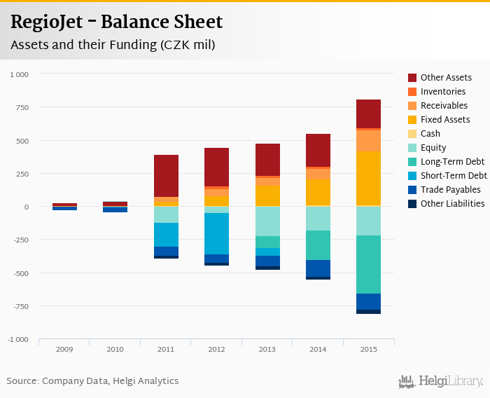 RegioJet's total assets reached CZK 807 mil at the end of 2015, up 47.1% compared to the previous year.
