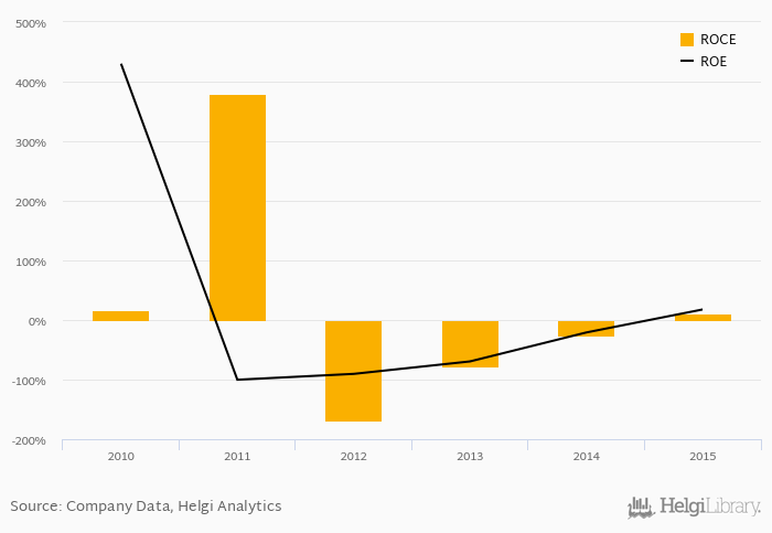 The result implies a return on equity of 17.7% and a return on invested capital of 11.3% in 2015. That is compared to an average of -52.6% and 23.6% over the last five years.