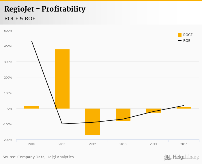 RegioJet made a net profit of CZK 35.2 mil in 2015, up 184% compared to the previous year. Historically, between 2009 and 2015, the company's net profit reached a high of CZK 35.2 mil in 2015 and a low of CZK -93.4 mil in 2013.