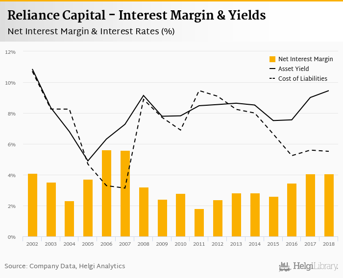 Reliance Capital's net interest margin amounted to 4.05% in 2018, down from 4.07% compared to the previous year.