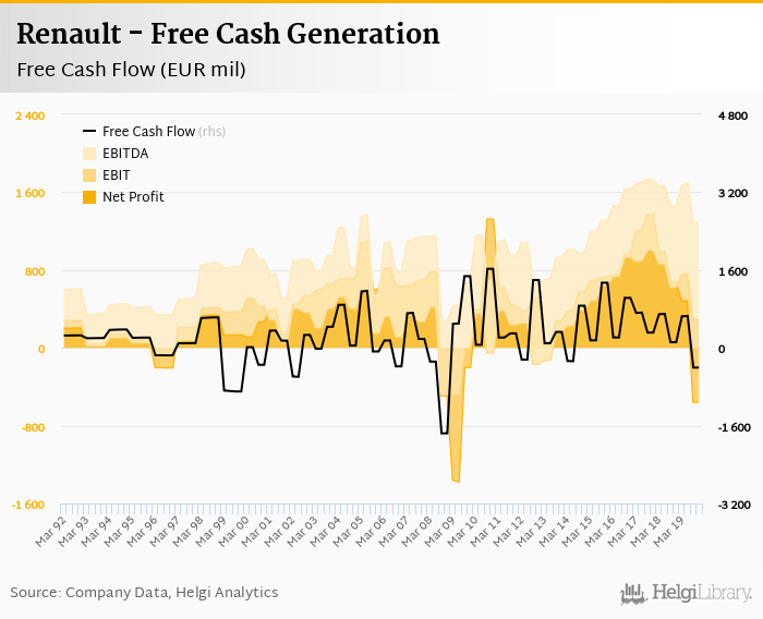 Renault made a net profit of EUR -556 mil with revenues of EUR 16,461 mil in 4Q2019, down by 182% and up by 19.9%, respectively, compared to the previous year. This translates into a net margin of -3.37%.