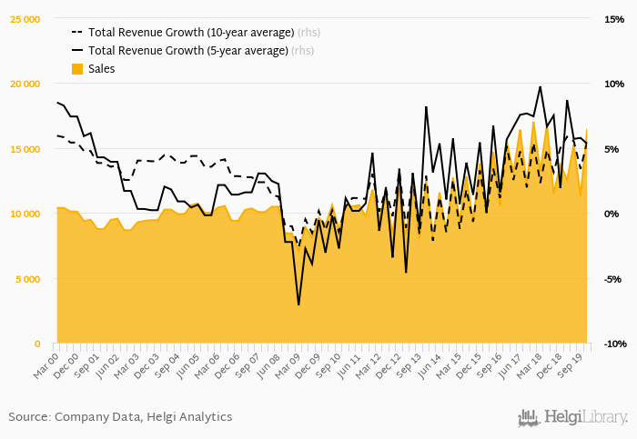 As a longer term comparison, sales have grown by an average of 5.32% a year in the last 5 years and 5.52% in the last 10 years.