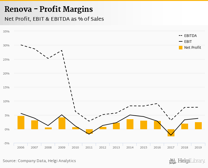 Renova made a net profit of EUR 3.76 mil with revenues of EUR 147 mil in 2019, up by 25.2% and down by 3.31%, respectively, compared to the previous year.