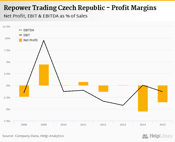 Repower Trading Czech Republic made a net profit of CZK -396 mil with revenues of CZK 11,251 mil in 2015, up by 31.8% and up by 6.3%, respectively, compared to the previous year.