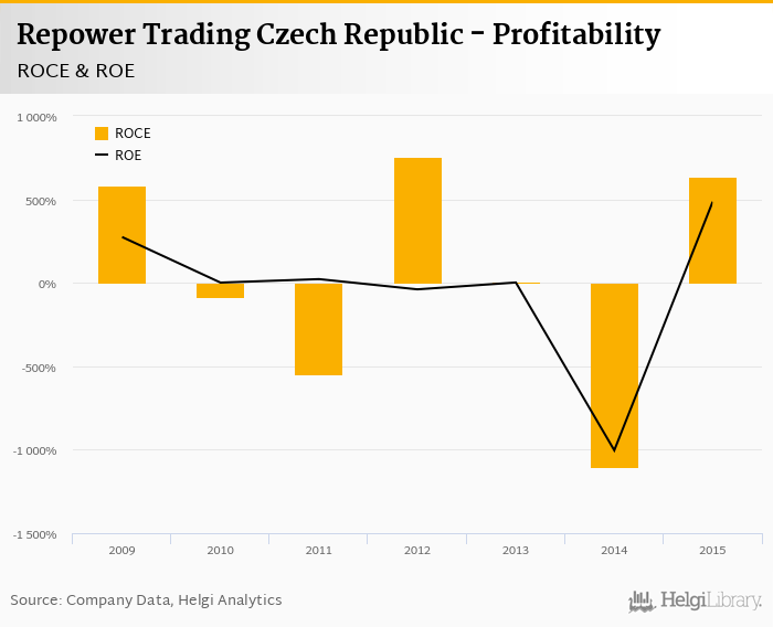 As far as Repower Trading Czech Republic's peers are concerned, Bohemia Energy generated ROE of 52.9% and ROCE of 52.7% in 2015. Centropol Energy's profitability reached 89.6% and 74.7%, respectively. Prazska Energetika operated with 17.1% and 12.1% returns in 2015.