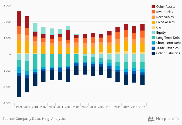 Net debt against equity is down 0.085 pp from five years ago (1.03). The ratio against EBITDA increased from 1.82x seen in 2009 to 2.64x.