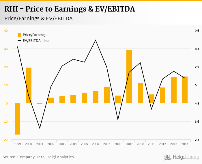 RHI stock traded at EUR 18.8 per share at the end 2014 translating into a market capitalization of USD 907 mil.