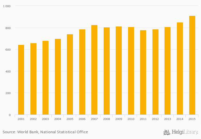 Road transport freight measured by mil tonne-km rose 7.18% to 911 mil tonne-km in Iceland in 2015, according to the National Statistical Office.