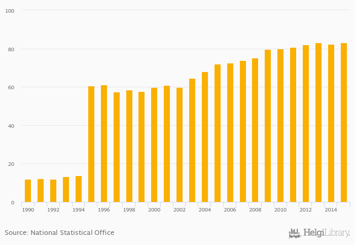 | Bulgaria | % | 79.5% | 80.0% | 80.6% | 82.1% | 83.0% | ||||||||||||||||
