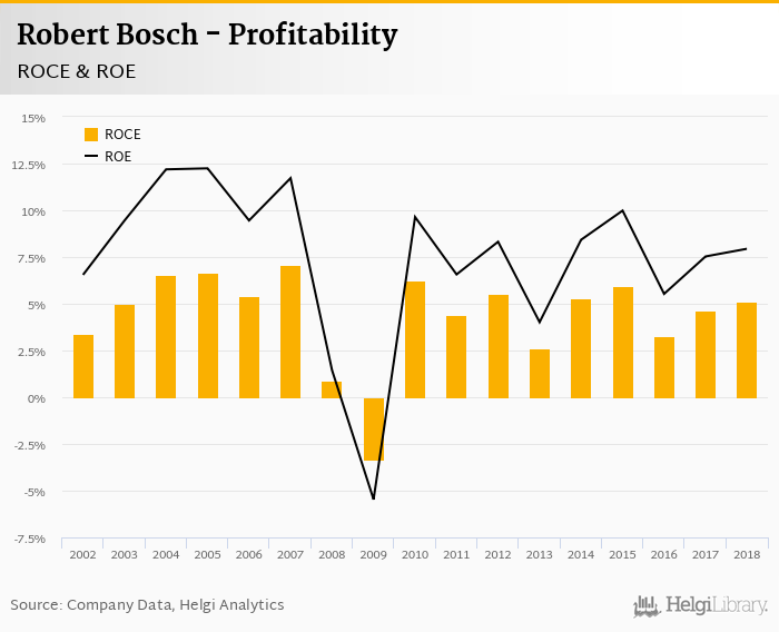 Robert Bosch made a net profit of EUR 3,047 mil in 2018, up 9.88% compared to the previous year. Historically, between 2001 and 2018, the company's net profit reached a high of EUR 3,193 mil in 2015 and a low of EUR -1,260 mil in 2009.