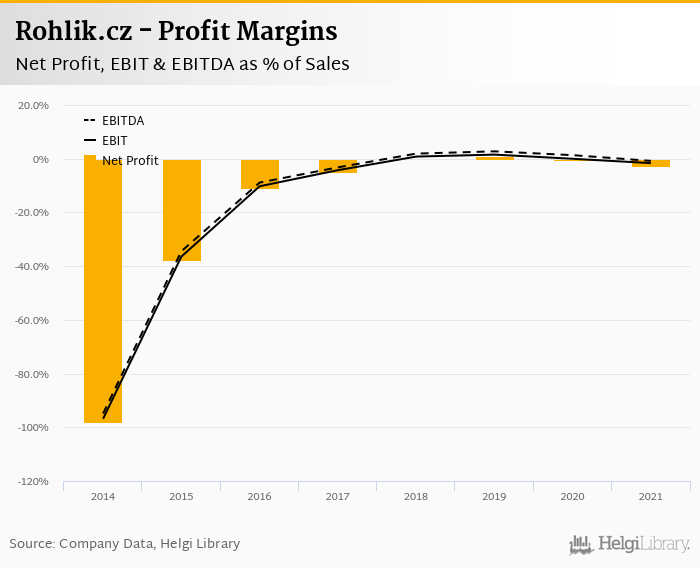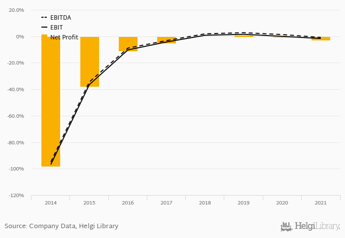 On the operating level, the EBITDA margin reached -0.811% and EBIT amounted to -1.64% of sales in 2021.