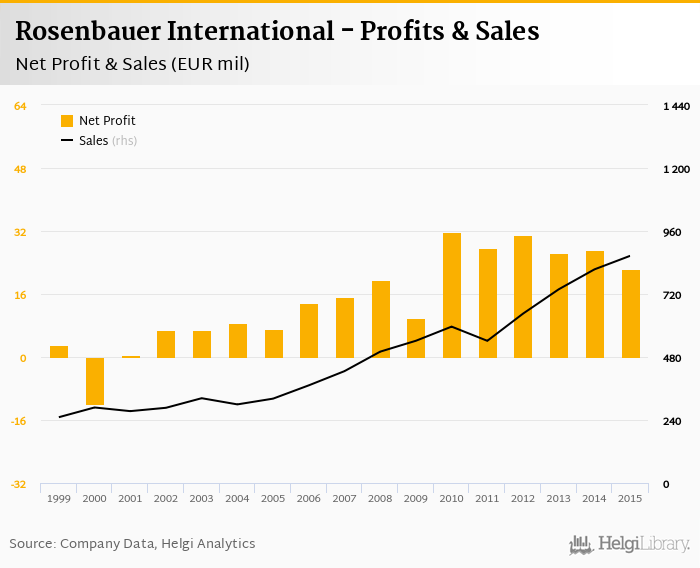 Rosenbauer International made a net profit of EUR 22.4 mil in 2015, down 17.8% compared to the previous year. Total sales reached EUR 865 mil, which is up 6.34% when compared to the previous year.