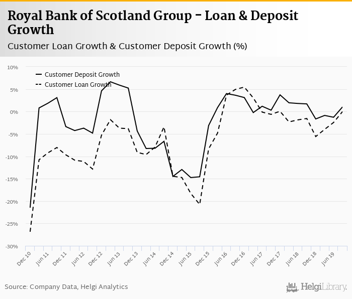At the end of 2019-09-30, Royal Bank of Scotland Group's loans accounted for 86.4% of total deposits and 41.1% of total assets.