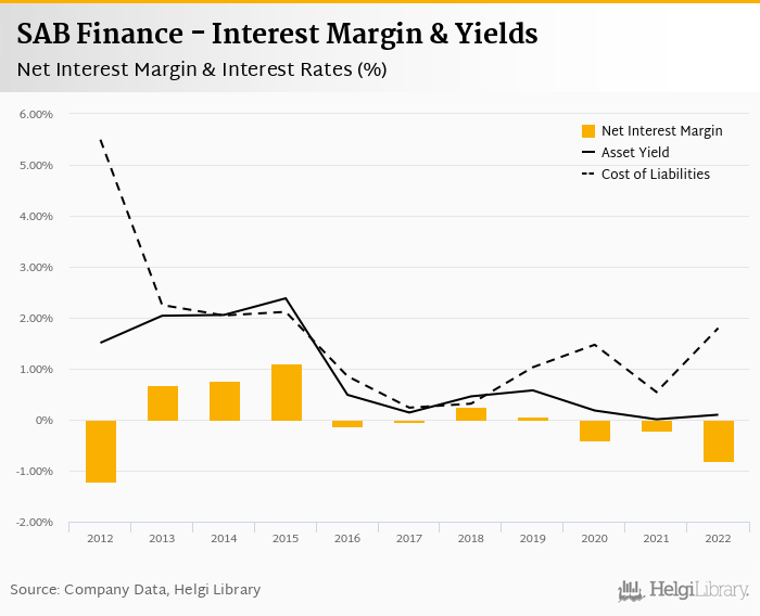 SAB Finance's net interest margin amounted to -0.815% in 2022, down from -0.214% compared to the previous year.