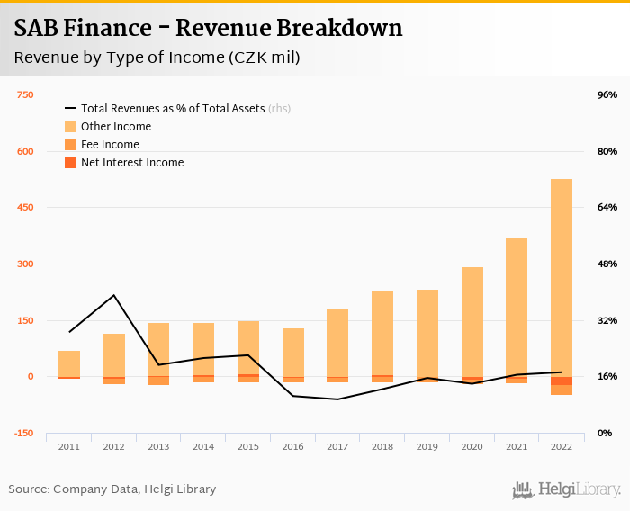 SAB Finance generated total banking revenues of CZK 480 mil in 2022, up 35.2% compared to the previous year.