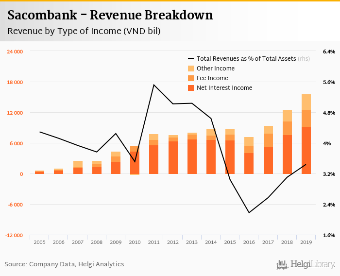 Sacombank generated total banking revenues of VND 15,610 bil in 2019, up 23.9% compared to the previous year.