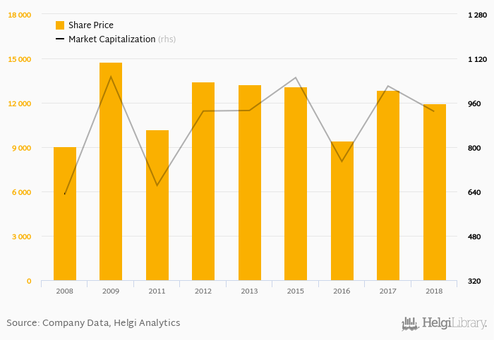 Since the end of 2013, the stock has depreciated by -9.68 % implying an annual average growth of -2.02 %. In absolute terms, the value of the company fell by USD -3.58 mil.