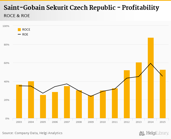 As far as Saint-Gobain Sekurit Czech Republic's peers are concerned, Varroc Lighting Systems Czech Republic generated ROE of 28.0% and ROCE of 17.8% in 2015. Automotive Lighting's profitability reached 46.9% and 47.7%, respectively. Continental Automotive Czech Republic operated with 7.08% and 2.02% returns in 2015.