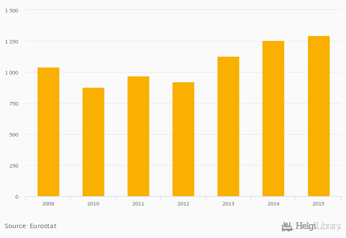 Historically, sales and collection of portable batteries and accumulators in terms of waste collected in Finland reached an all time high of 1,293 tonnes in 2015 and an all time low of 877 tonnes in 2010.
