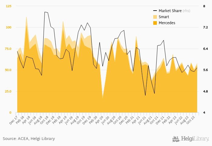 The group sold 55.3 thousand of Mercedes in November, followed by 2.35 thousand of Smart cars.
