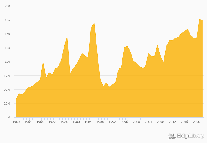 Historically, sales of passenger cars in Norway reached an all time high of 176 thousand in 2021 and an all time low of 32.3 thousand in 1960. When compared to Norway's main peers, sales of passenger cars in Denmark amounted to 148 thousand, 81.7 thousand in Finland, 16.7 thousand in Iceland and 288 thousand in Sweden in 2022.