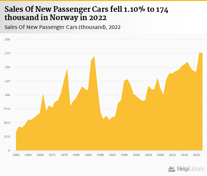 Sales of passenger cars fell 1.10% to 174 thousand in Norway in 2022, according to ACEA.