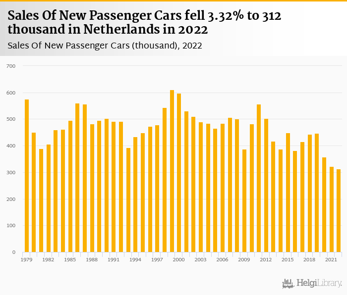 Sales of passenger cars fell 3.32% to 312 thousand in Netherlands in 2022, according to ACEA.