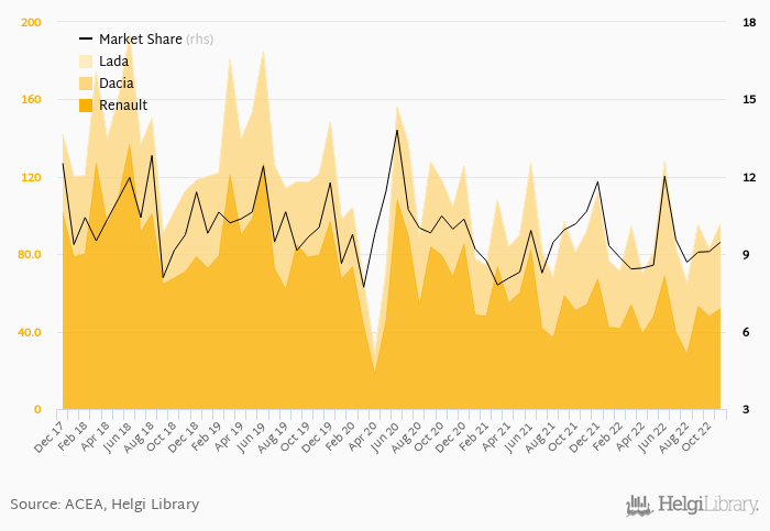 The group sold 51.9 thousand of Renault brand cars in November, followed by 43.8 thousand of Dacias and 0.027 thousand of Ladas.