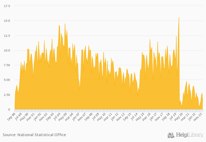 Historically, sales of Smart in the European Union reached an all time high of 15.5 thousand in December 2019 and an all time low of 0.247 thousand in September 1998.
