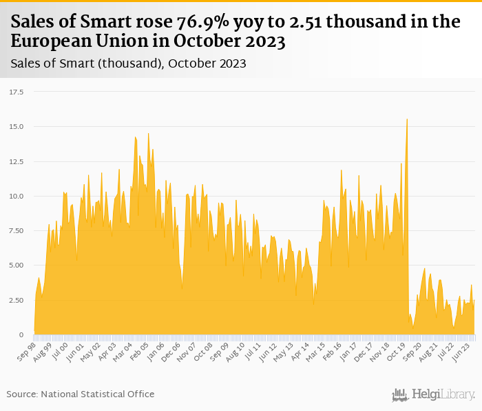 Sales of Smart rose 76.9% yoy to 2.51 thousand in the European Union in October 2023, according to company data. This is 43.4% more than in the previous month.