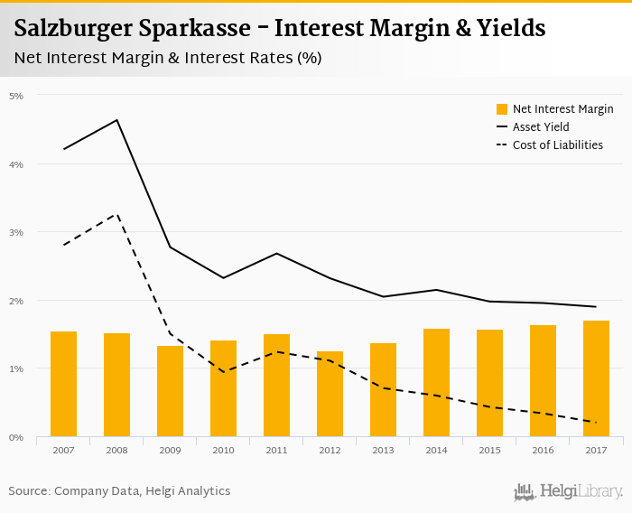 Salzburger Sparkasse's net interest margin amounted to 1.71% in 2017, up from 1.64% compared to the previous year.