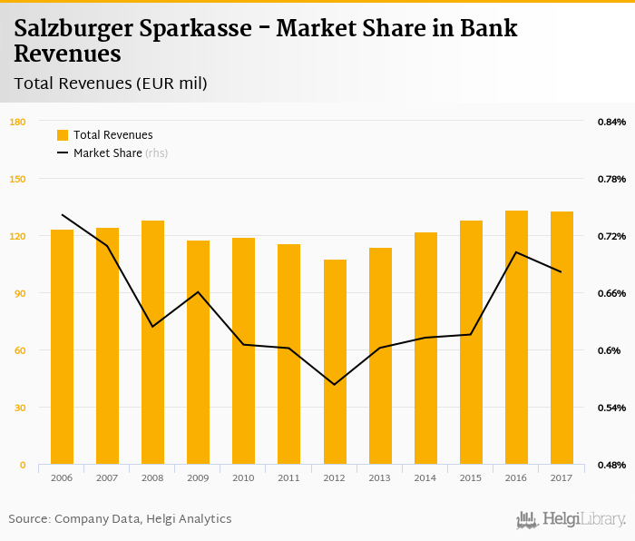 Salzburger Sparkasse generated total banking revenues of EUR 133 mil in 2017, down 0.239% compared to the previous year.
