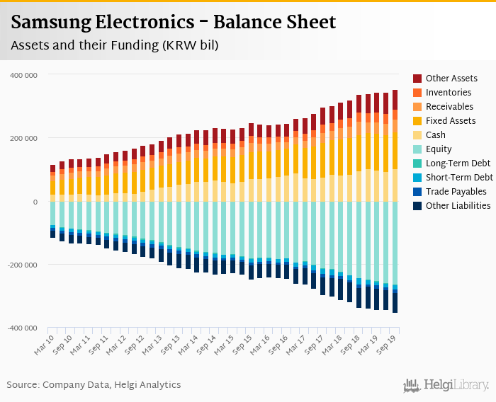 Samsung Electronics's total assets reached KRW 353,386 bil at the end of 3Q2019, up 4.8% compared to the previous year.