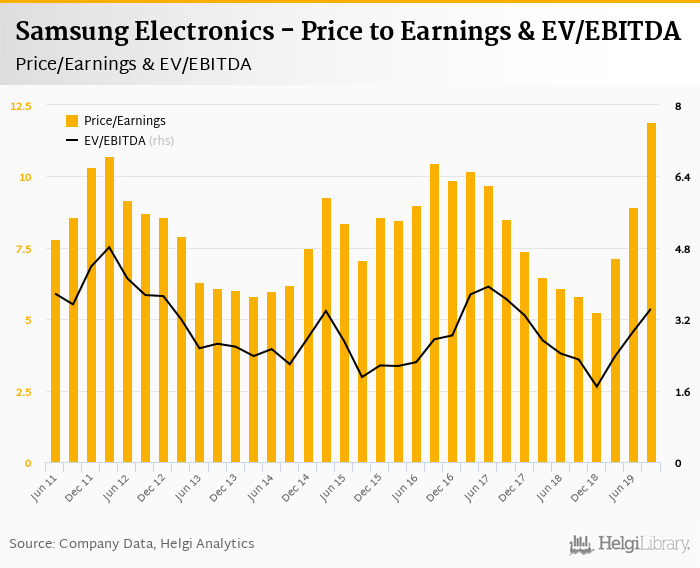 Samsung Electronics stock traded at USD 49.1 per share at the end 3Q2019 translating into a market capitalization of USD 243,751 mil.