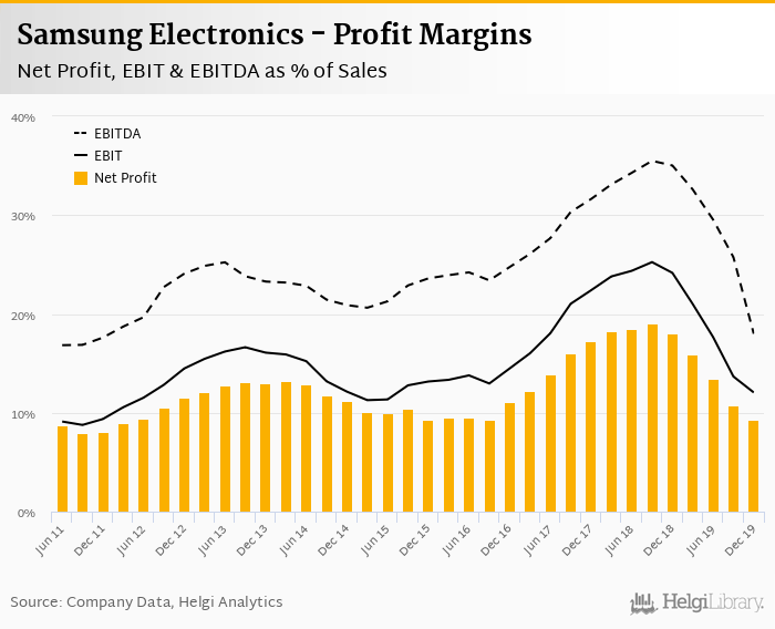 Samsung Electronics made a net profit of KRW 5,228 bil with revenues of KRW 59,885 bil in 4Q2019, down by 37.2% and up by 1.05%, respectively, compared to the previous year.
