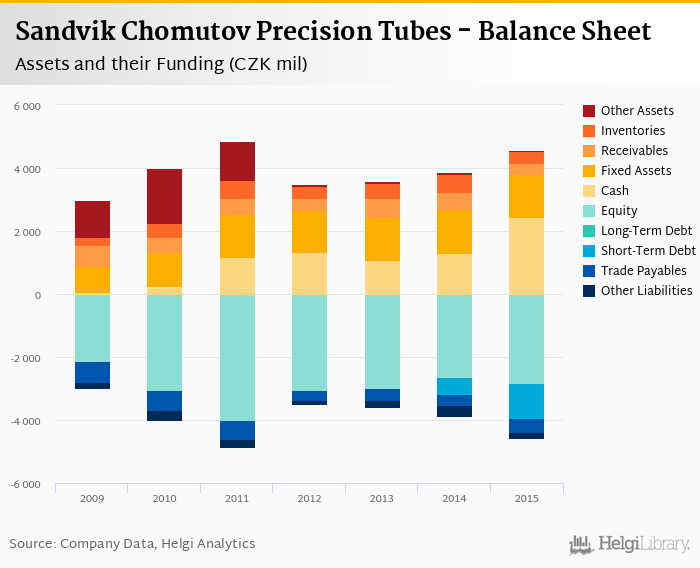 Sandvik Chomutov Precision Tubes's total assets reached CZK 4,584 mil at the end of 2015, up 18.5% compared to the previous year.