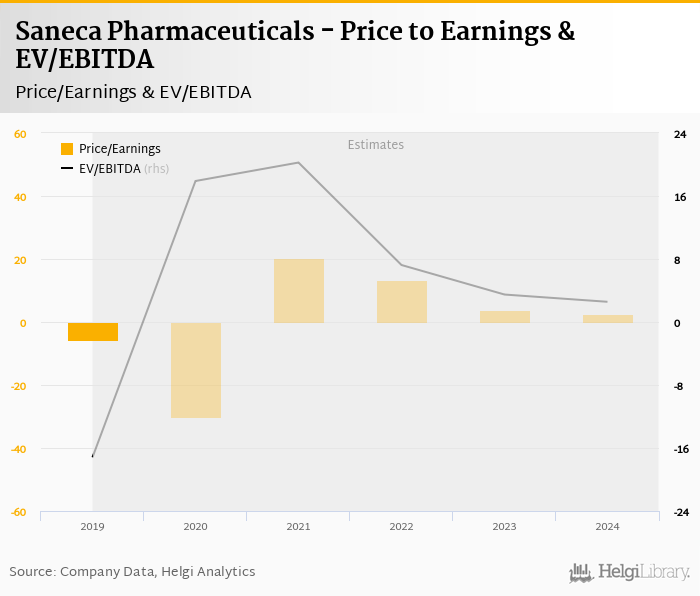 Saneca Pharmaceuticals stock traded at EUR 20.3 per share at the end 2019 translating into a market capitalization of USD 22.8 mil.
