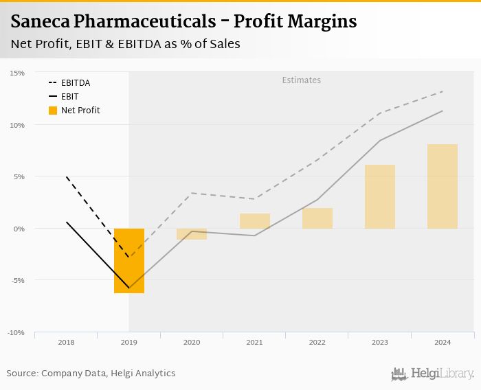 Saneca Pharmaceuticals made a net profit of EUR -3.60 mil with revenues of EUR 57.5 mil in 2019, up by 0% and up by 60.6%, respectively, compared to the previous year.