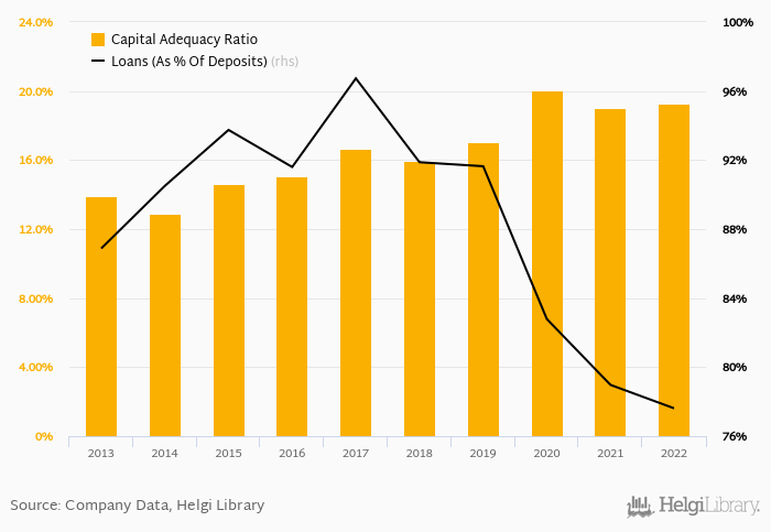 Bank's loan to deposit ratio reached 77.6% at the end of 2022, down from 79.0% when compared to the previous year.