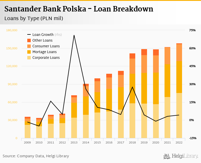 At the end of 2022, Santander Bank Polska's loans accounted for 77.6% of total deposits and 58.8% of total assets.