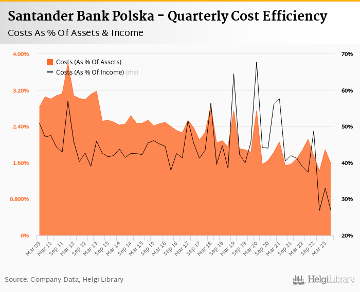 Santander Bank Polska's cost to income ratio reached 26.8% in the second quarter of 2023, down from 33.1% when compared to the previous quarter.