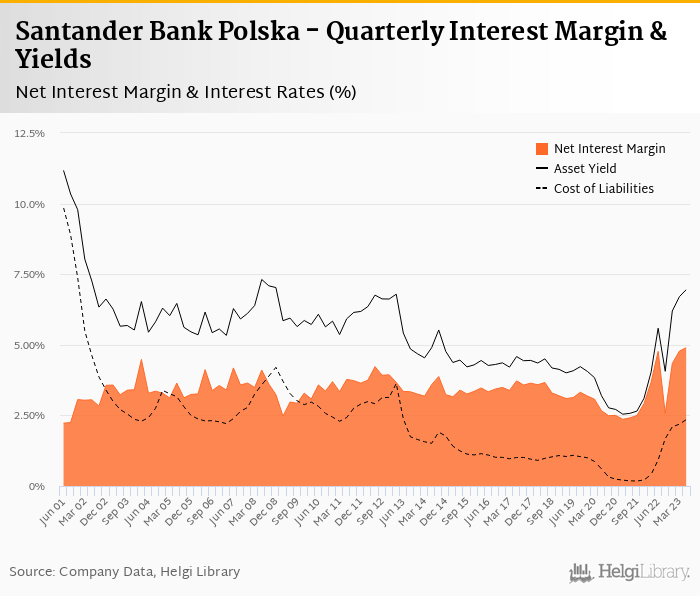 Santander Bank Polska's net interest margin amounted to 4.90% in the second quarter of 2023, up from 4.78% when compared to the previous quarter.