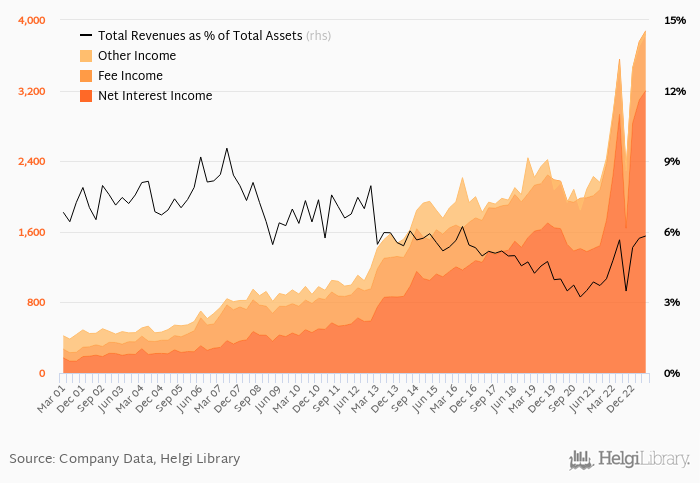 Bank's total revenues accounted for 5.82% total assets in the second quarter of 2023, up from 5.66% a year earlier.