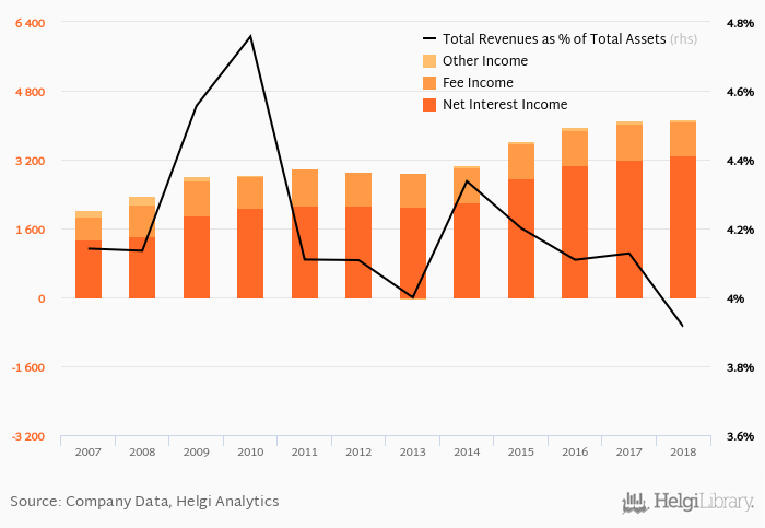 Bank's total revenues accounted for 3.91% total assets in 2018, down from 4.13% a year earlier.