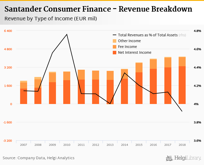 Santander Consumer Finance generated total banking revenues of EUR 4,134 mil in 2018, up 0.449% compared to the previous year.