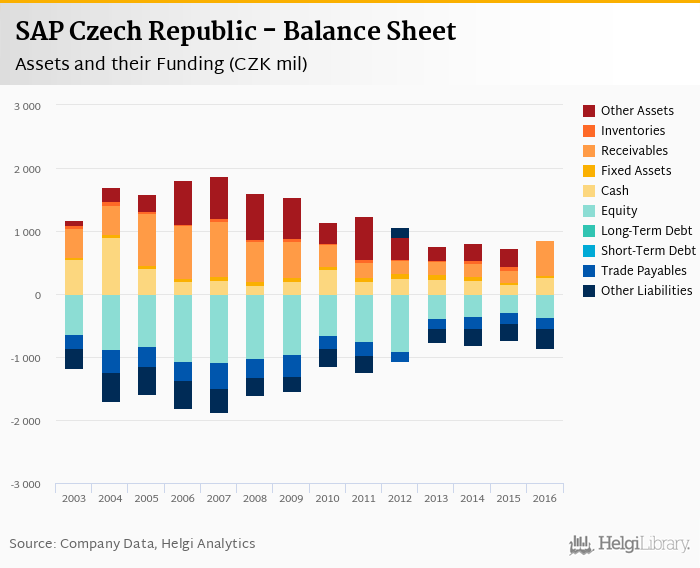 SAP Czech Republic's total assets reached CZK 862 mil at the end of 2016, up 17.1% compared to the previous year.